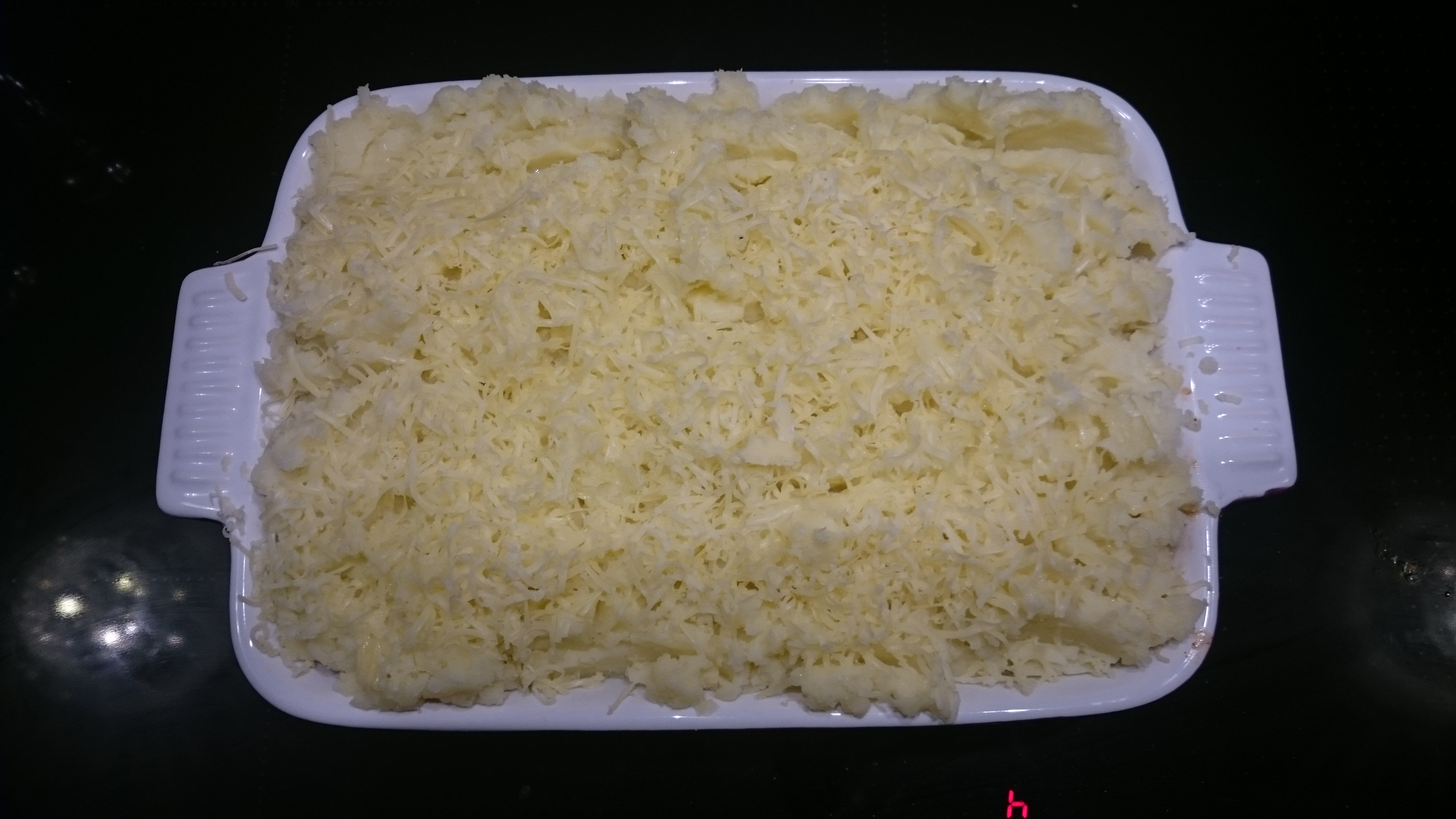 Bake for 35 minutes or until the mash is golden with some crispy bits. Serve with fresh veg like green beans or broccoli and cauliflower.