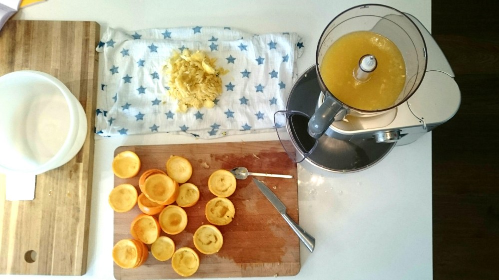 You will need some additional stuff, especially a muslin cloth and an electric juicer is preferable, at the very least a decent hand juicer. Whatever jars you are using need sterilising so rinse them with boiling water (be careful) and leave to dry.