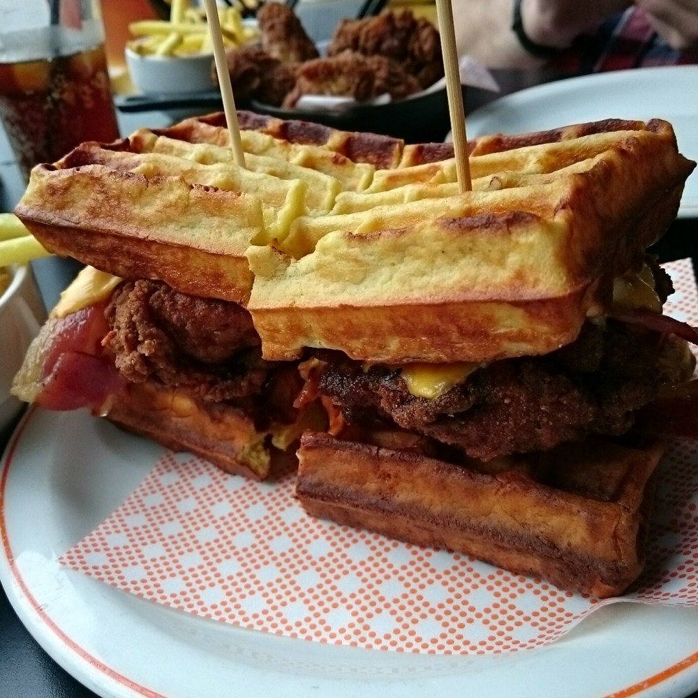 However, they are the home of the ‘Waffle Burger’ and this creation is truly special. Two chicken fillets, cheese and various other bits in between two waffles. Looks ridiculous but tastes amazing!